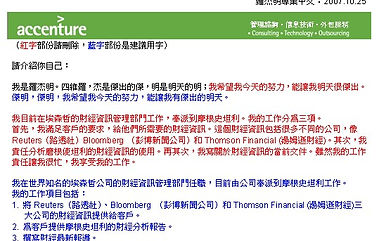 「我今天的努力,會讓我有「傑」出的「明」天,請多多指教!」笑容滿面的羅傑明,一邊說,一邊將他的中文名片遞給我。幾個月前,這個二十多歲的大男孩還不知道該怎麼介紹自己,還不知道什麼是「指教」,現在,他居然說服了Accenture 的主管,讓他有了自己的中文名片,也悄悄地將「杰明」改成了「傑明」。
